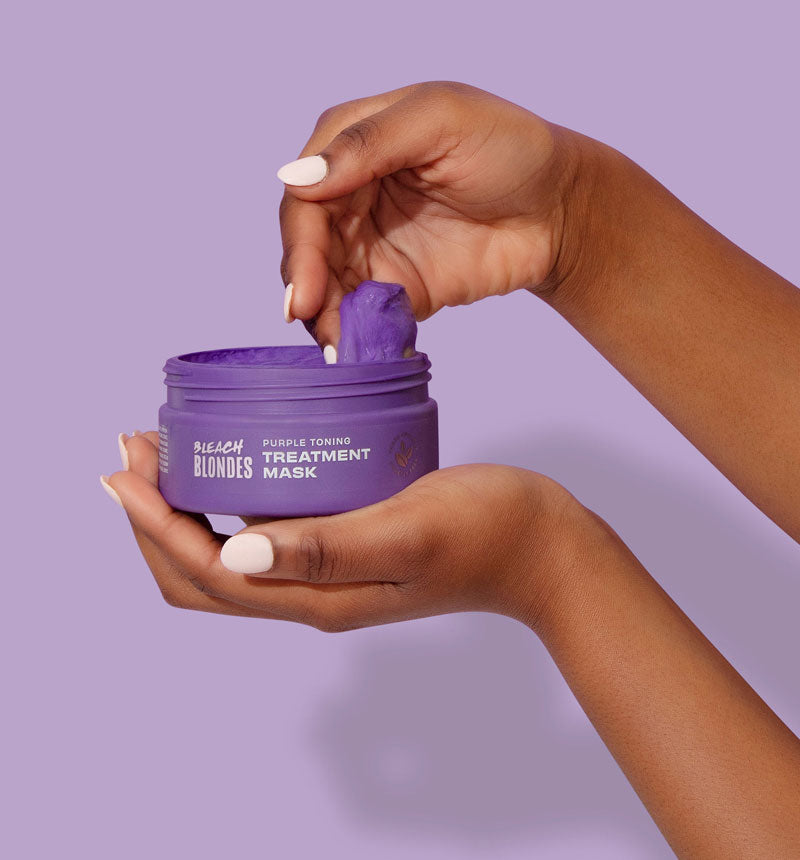Freshly bleached hair looks bright and beautiful but can discolour and go brassy over time. Purple pigments work to counteract yellow tones whereas blue pigments neutralize orange, brassy tones. These pigments deposit on the hair shaft to create icy, silver-grey shades to brighten blondes and achieve a cool, ashy look.